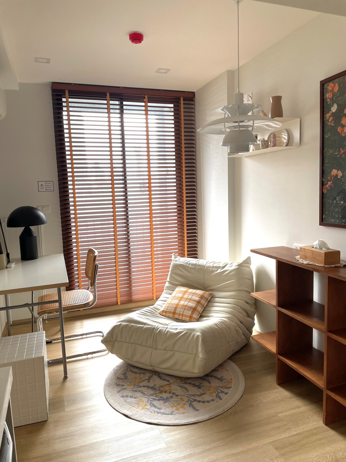 Bienvenido a The Forest Duplex Retreat, una escapada relajante a la naturaleza en un entorno verde y tranquilo. 🍀 El dúplex cuenta con una luminosa sala de estar de techo alto que se siente abierta y aireada. Los grandes ventanales de cristal invitan a la luz natural y a la vegetación en el espacio, creando una conexión perfecta entre el confort interior y la serenidad exterior. Imagina despertarte con el canto de los pájaros y la suave luz que se filtra a través de los árboles, relajarte en el suave sofá, trabajar junto a la ventana con vistas al bosque o simplemente disfrutar de tus programas favoritos.