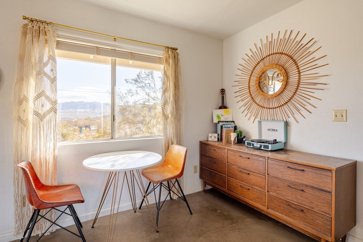 Escápate a un acogedor refugio bohemio en el corazón de Joshua Tree. Perfecto para parejas o viajeros solitarios que buscan desconectar, recargar energías y disfrutar de la magia del desierto. Relájate en el jacuzzi privado bajo un cielo lleno de estrellas, relájate en la bañera interior o acurrúcate junto a la chimenea de leña con un buen libro o una gran compañía. Cada detalle, desde los textiles cálidos hasta el arte local, ha sido seleccionado para la comodidad, la inspiración y la paz.