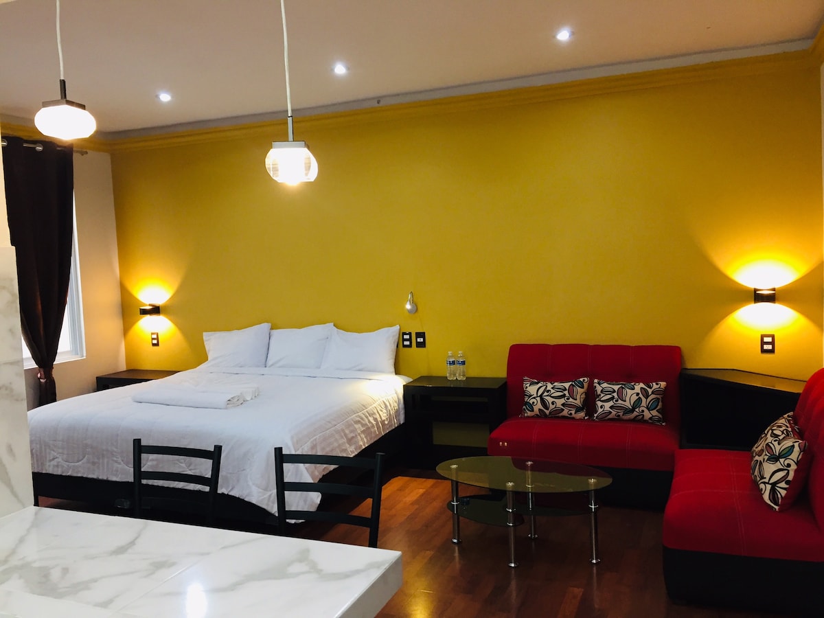 🏡 Habitación privada con dos camas matrimoniales, ideal para familias o grupos de hasta 4 personas. Ubicada en el tradicional Barrio de Mexicanos, a solo 10 min caminando del Centro Histórico y Santo Domingo. 🛏️ Cama cómoda, 🚿 baño privado con agua caliente, ⚡ WiFi rápido, 🔑 llegada autónoma y 🍳 cocina compartida con vista al cielo. 🌿 Disfruta de un hotel local, tranquilo y seguro, perfecto para explorar San Cristóbal.