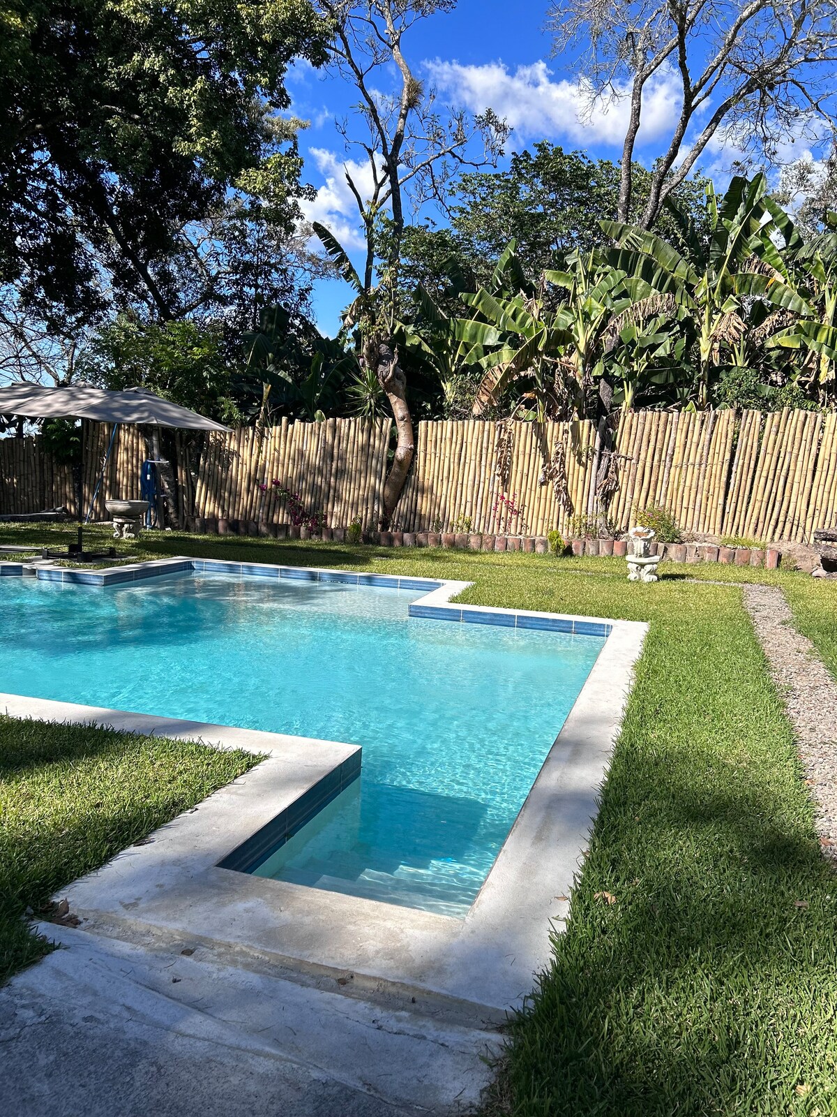 Un lugar en medio de la naturaleza para gozar en grande con una amplia piscina para celebrar. Tiene área para cocinar adentro de la casa y otra al aire libre, cuenta con un baño amplio principal moderno adentro de la casa. El espacio es para 6 hasta 10 personas. al llegar a la propiedad el encargado está disponible para ayudar, el y su familia duermen en una casa completamente separada de la casa principal respetando la privacidad de los ocupantes. Starlink Wifi is on the property