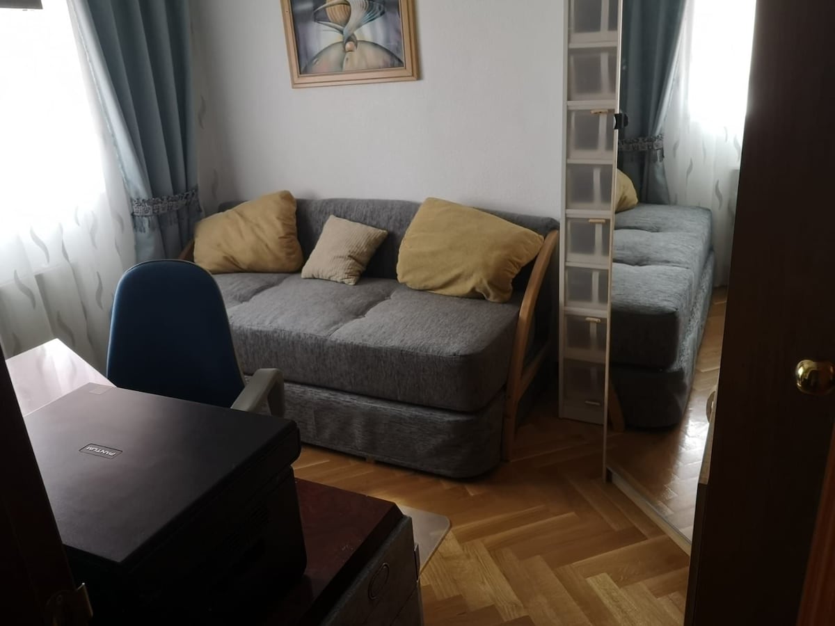 Habitación para una persona. La cama es grande. Cerca de la estación de Renfe (3 minutos). El centro de la ciudad está a solo 2 paradas en tren (12 minutos). Desde la Terminal 4 del aeropuerto, a solo 40 minutos. Ropa de cama, toalla, agua caliente, microondas, nevera. No se puede cocinar. No se puede usar la lavadora. ¡ATENCIÓN! DESPUÉS DE LAS 22:00 NO ACEPTO HUÉSPEDES. Para entregar las llaves del apartamento, espero hasta las 22:00.