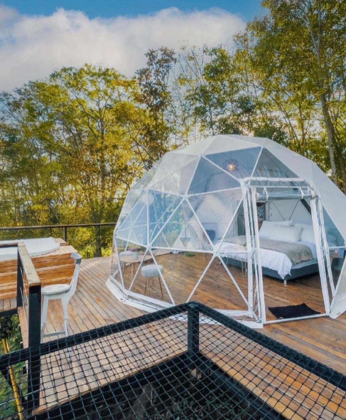 Escápate a este exclusivo glamping para 2 personas. Déjate sorprender por la tranquilidad, el diseño y la exclusividad de este glamping de cristal. ideal para desconectarse en medio de la naturaleza. Tu estadía incluye: Jacuzzi privado (climatizado) y sin límite de tiempo 2 copas de sangría kit de fogata Desayuno Ideal para escapadas románticas o de relajación. Vive la magia del glamping con todas las comodidades y disfruta de una experiencia inolvidable bajo las estrellas.