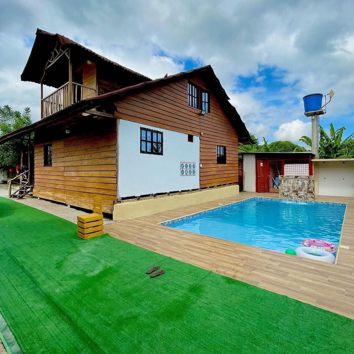 Cabaña ecológica con piscina.