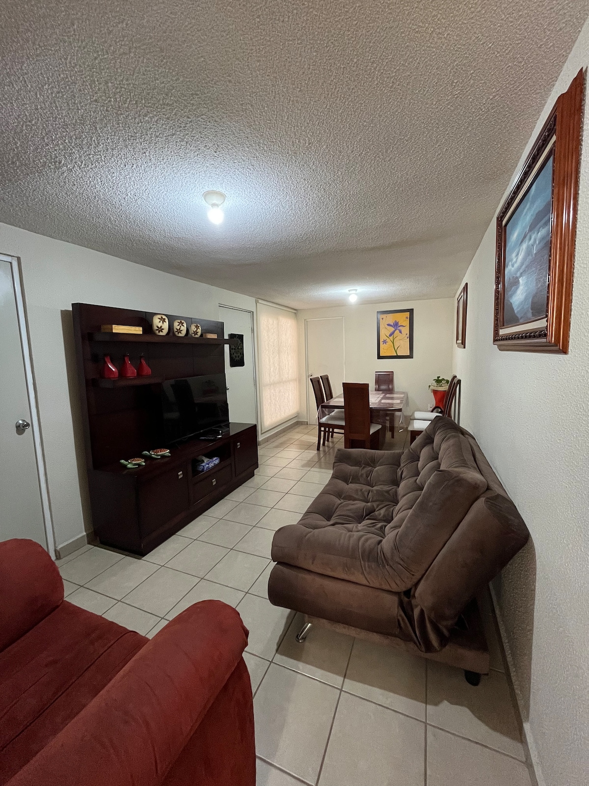 Excelente departamento en Querétaro, ubicado a unos minutos de fray Junipero serra, donde podrás encontrar HEB, Walmart, la comer, Aurrerá y muchas más tiendas. Cuenta con 2 cuartos con cama matrimonial, baño completo y sofá cama. Ideal para estancias largas ya que cuentas con lavadora, buen internet y está dentro de una privada con estacionamiento y vigilancia las 24 horas Zakia, Zibata y la anahuac a 5 mins Aeropuerto 20 mins Centro de Querétaro 15-20 mins Por favor cuidar mucho el agua