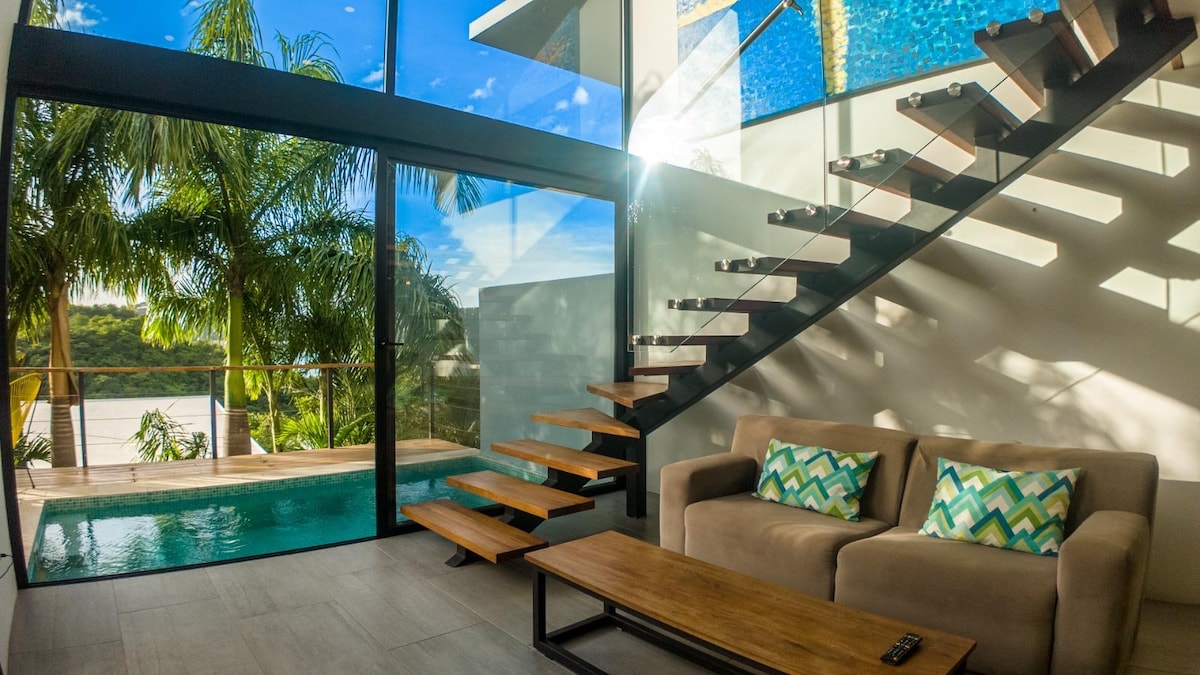 Santa Cruz en San Juan del Sur te da la bienvenida. Despiértate por la mañana y disfruta de una impresionante vista al mar sobre la bahía de San Juan del Sur. Date un baño en tu piscina privada rodeada de palmeras y plantas tropicales. Tienes total privacidad en tu propia casa de la piscina. A solo 5 minutos a pie de la playa y de la ciudad de San Juan del Sur. Pero Santa Cruz está lo suficientemente lejos de la ciudad como para estar enclavada en tu privacidad con tu piscina privada. Nuevo con ROKU-TV.