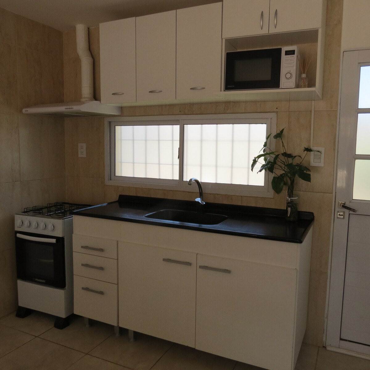 Disfruta de este lugar para relajarte en tus vacaciones o si estas viajando. Comodo departamento amoblado, sencillo, luminoso en primer piso. Tiene estufas y aire acondicionado frío calor. Equipado tiene un pequeño patio con chulengo para hacer asados. Entrada independiente en una propiedad donde viven los dueños.