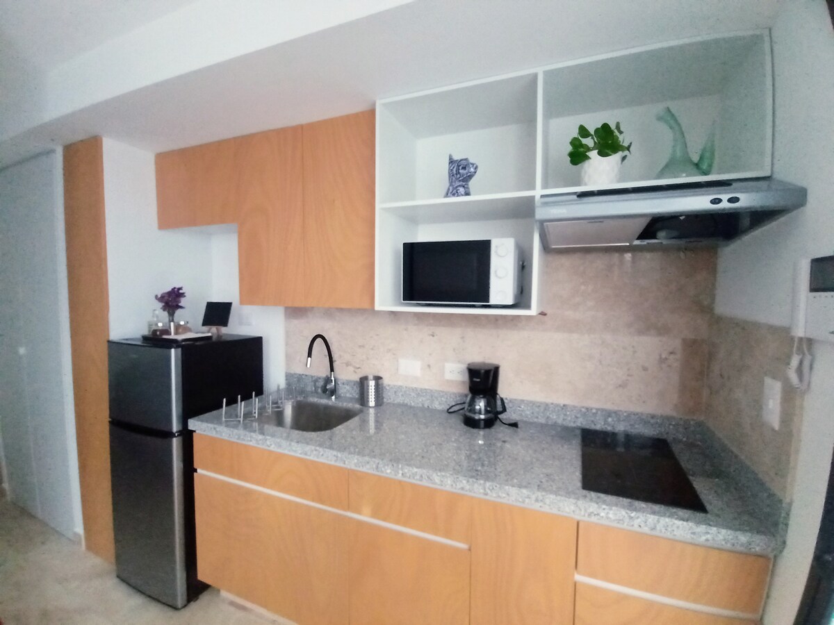 Departamento en la zona más exclusiva y moderna de Puebla con vista panorámica al Puebla Moderno, en un espacio privado acogedor a unos pasos del centro comercial, Museo Barroco, Parques, entre otros. Disfruta tu estancia con todos los espacios dinámicos sanitizados para tener un momento agradable, así como lo necesario para poder disfrutar y relajarte en estancias cortas o largas. Haz uso de nuestras exclusivas amenidades pensadas en tus necesidades. Estacionamiento privado para 1 auto.