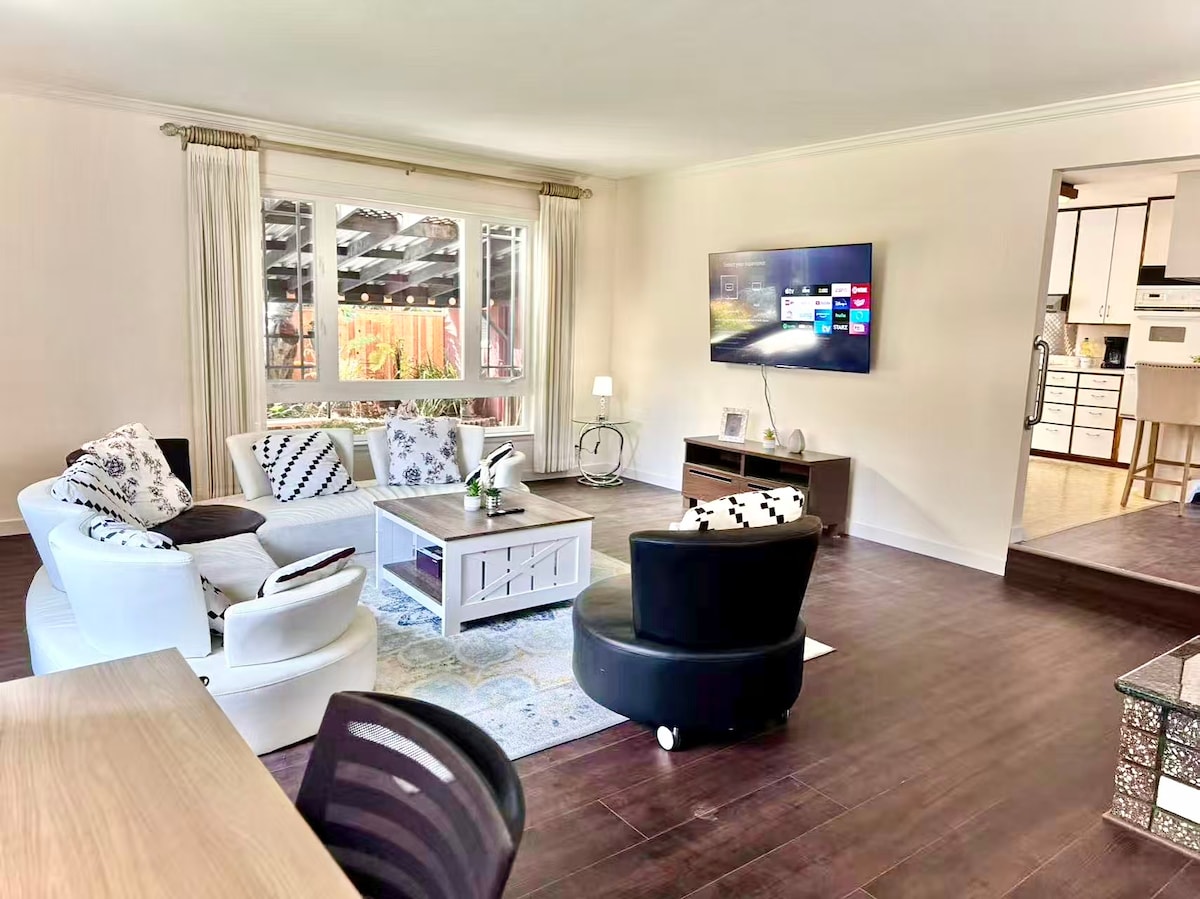 ¡Absolutamente la mejor ubicación de Mountain View, a pocos pasos del centro de la ciudad! Situada cerca de todo el entretenimiento, la vida nocturna y las atracciones que ofrece esta vibrante ciudad. Esta pequeña casa junto a la piscina, bellamente amueblada, se encuentra a pocos minutos del Caltrain y del tren ligero, del lago Shoreline, de Stanford, Menlo Park, del centro de la NASA Ames y mucho más. ¡Sal a dar un paseo y explora la cocina local e internacional, el maravilloso mercado de agricultores y las tiendas! Perfecta para familias o amigos, ¡te encantará esta escapada al Área de la Bahía!