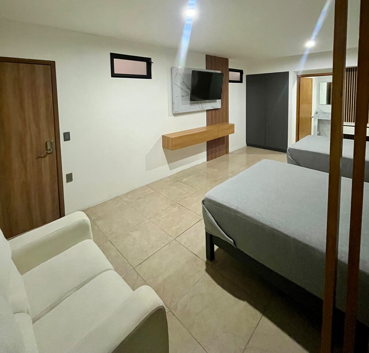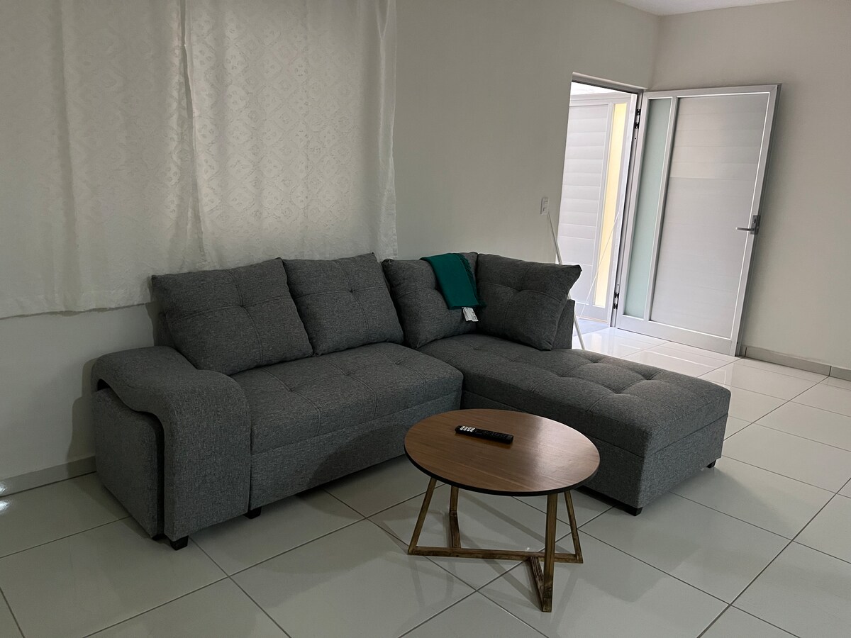 Cómodo departamento privado en un segundo piso, en Santa Maria de El Valle Jalisco. Una recámara con baño privado, Amplia sala con 2 sofá cama, Medio baño extra en la entrada incluido: wifi, Nexflix cable, plancha, secadora, ganchos para la ropa, refrigerador, cafetera, microondas, utensilios, jabón shampoo.