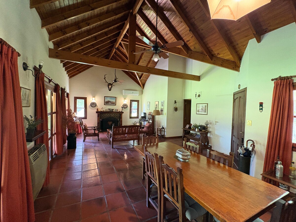 Disfrutar de la naturaleza y la tranquilidad de la comodidad de 2 casas rústicas estilo campo casi pegadas y refaccionadas con gran parque, pileta, quincho, parrillas, discos, horno de barro y un entorno maravilloso. Especial para vivir el afuera ! Barrio residencial. Ambiente familiar. No fiestas ni música fuerte. Atendido por sus dueños que viven a la par en otra casa. Tenemos perros que viven libremente por eso preferimos que no traigan mascotas. Hay 1 gallinero el la otra punta del terreno