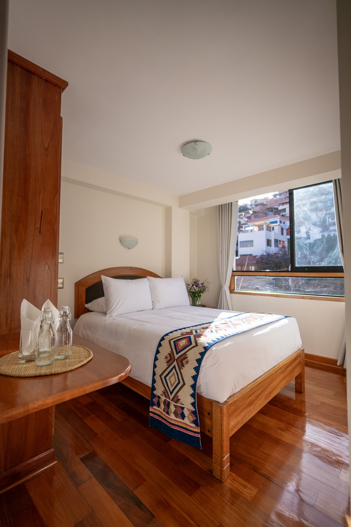 Habitación moderna, totalmente equipada y recientemente restaurada con decoración vintage. Habitacion cuenta con una cama de dos plazas, baño privado, calefacción, Tv con cable y Wifi . Diseñado cuidando los detalles para la comodidad de nuestros huéspedes con una vista panorámica de la ciudad del Cusco. Ubicado en una zona residencial a solo 5 minutos en taxi de la Plaza de Armas.