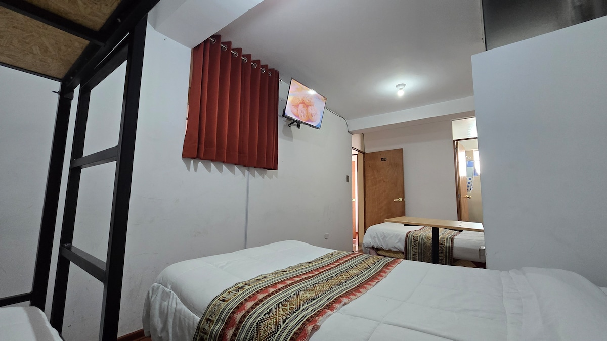 Casa Cristobal Centenario un lugar moderno con detalles andinos cusqueños. Acogedora y cómoda habitación en el segundo piso (2do piso) cuenta con moderno baño privado, agua caliente las 24 hrs, smart TV, Internet de alta velocidad (300 Mb). Espacio amplio para trabajar. Nos encontramos a 2 cuadras del Korycancha (Templo Inca del sol) a 4 cuadras de la plaza de principal de Cusco. - No incluye desayuno. - Almacén de equipaje totalmente gratuito para antes durante y después de su estadía.