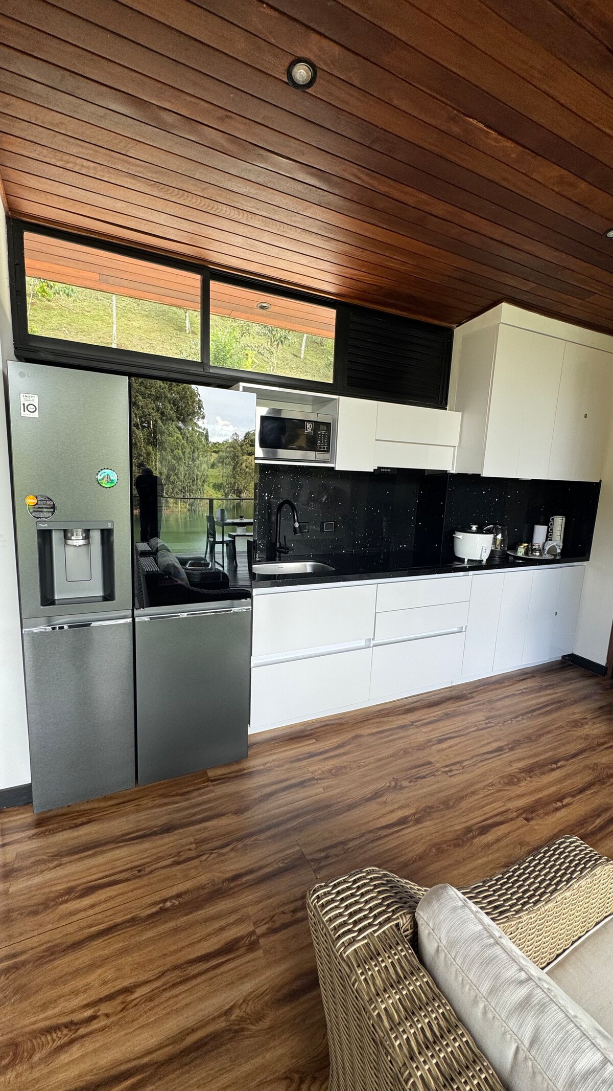 Newly built Modern villa in La Cristalina, perfectly located between Peñol & Guatapé Surrounded by nature with a spring-fed natural pool, 1 hot jacuzzi, 1 hot tub, sun deck, fire pit, & elegant linens Enjoy 5 TVs, WiFi, Netflix, ping pong🏓 badminton🏸 paddle board & a private boat dock Fully equipped chef’s kitchen with dishwasher, high-end appliances, 4 bedrooms, 5 bathrooms garage & all essential services—comfort & nature in one perfect place, deliveries & Airport pick up available (extra$$)