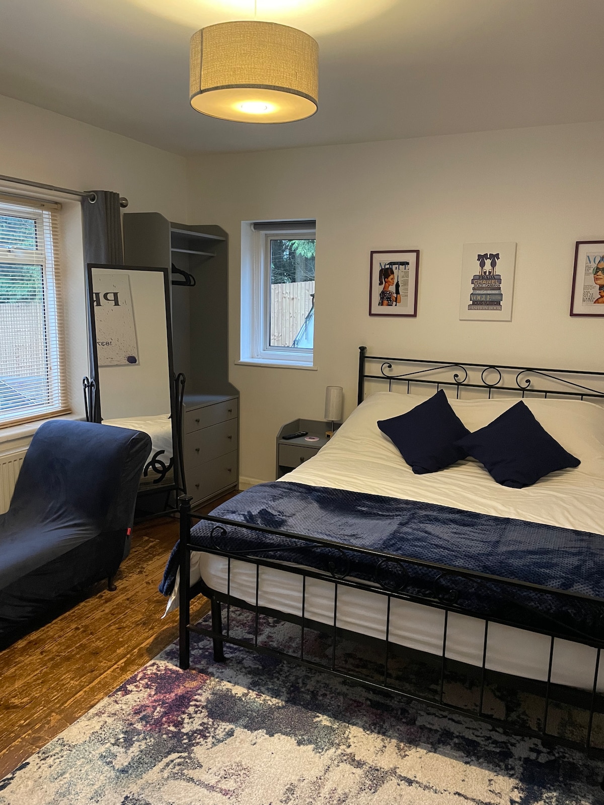 Before booking, please read the full description — both listings are within our main home’s grounds and are not standalone. Private outdoor space with own entrance. Easy access to Farnborough & surrounding areas. Private parking; Farnborough North 10 min walk, Farnborough Main <20 mins (35 mins to London Waterloo). Wifi, Netflix, well-equipped kitchen, free parking on site. Washing machine & tumble dryer available by request.
