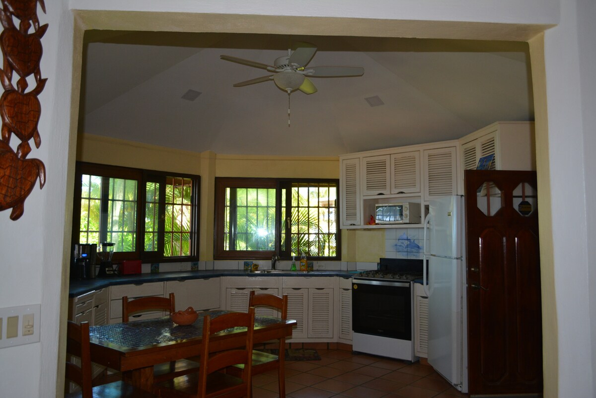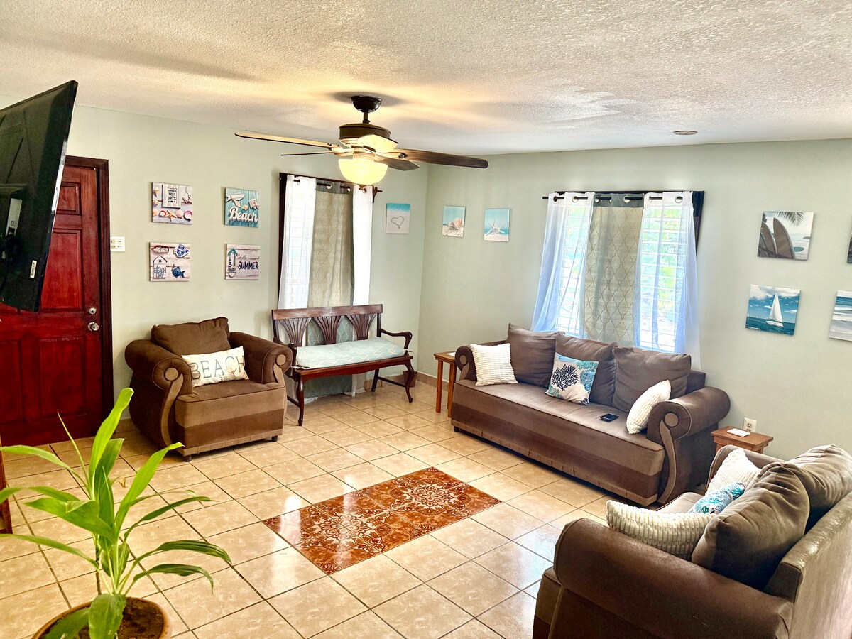 ¡Tu refugio tropical te espera! Sumérgete en nuestro prístino apartamento de dos pisos en medio de un exuberante bosque tropical. Con cuatro dormitorios iluminados por el sol, dos baños brillantes y un porche con brisa, la relajación es solo el comienzo. A un minuto a pie de la playa y de una piscina comunitaria, donde te esperan interminables días de felicidad bañada por el sol. Nada, practica esnórquel o bucea desde nuestro muelle privado. Disfruta de acceso gratuito al Mayan Princess Resort en West Bay.