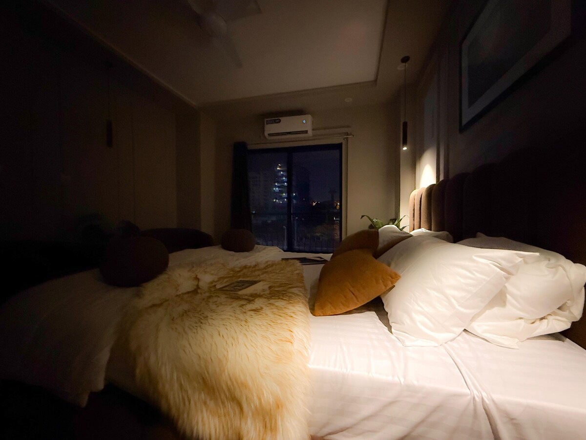 Un apartamento boutique de 1700 pies cuadrados y 2 dormitorios ubicado en el sereno corazón de Bahria Town. Ubicada en una planta elevada, esta casa cuidadosamente seleccionada está bañada en luz natural y ofrece vistas abiertas tanto al norte como al sur, con tiendas y restaurantes a poca distancia a pie. Diseñado para la comodidad y la elegancia, es ideal para familias, parejas, viajeros de negocios o cualquier persona que busque una estancia tranquila pero bien comunicada en Islamabad.