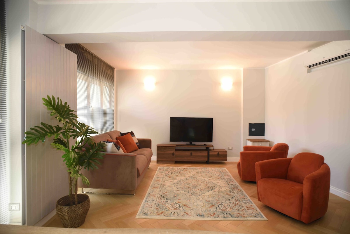 The truly Florentine soul of this exquisite apartment and its panoramic terrace sets the stage for an unforgettable stay. From this privileged vantage point above the rooftops, you can almost touch Florence’s monuments as you sip a sunset aperitivo, or greet the morning beneath the pergola with a leisurely breakfast while the city awakens in golden light.