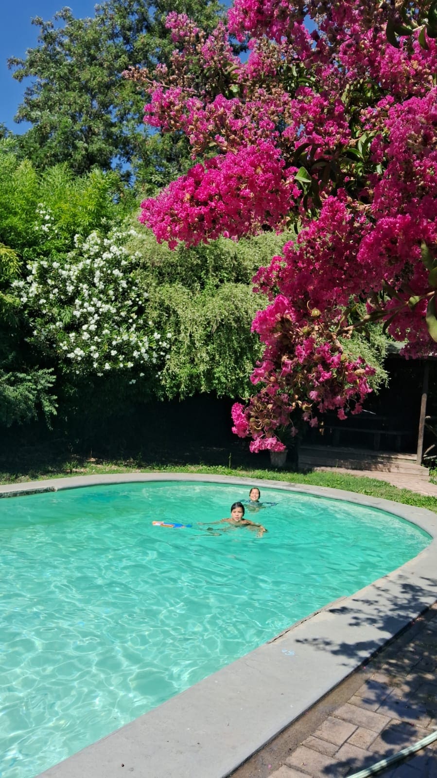 Olvídate de las preocupaciones en este gran alojamiento: Es un Oasis de Tranquilidad, Seguridad y Exclusividad. Ideal Parejas solas o con hijos Completísima Cabaña;Cama 2Plazas+2 camas singles, Aire Condicionado,TV,Wifi,Encimera, Refrigerador,Microondas,Hervidor,Ollas,Vajilla,Utensilios,jugueraTé,Café,Comedor Inter y Exterior Piscina,Tinaja🔥Quincho, Asador, mobiliario,Lindo Jardín,Árboles,Reposeras. CercanoViñas,Museos,Restaurantes,Lugares con Encanto,Historia y Tradición Chilena. Starlink 📶