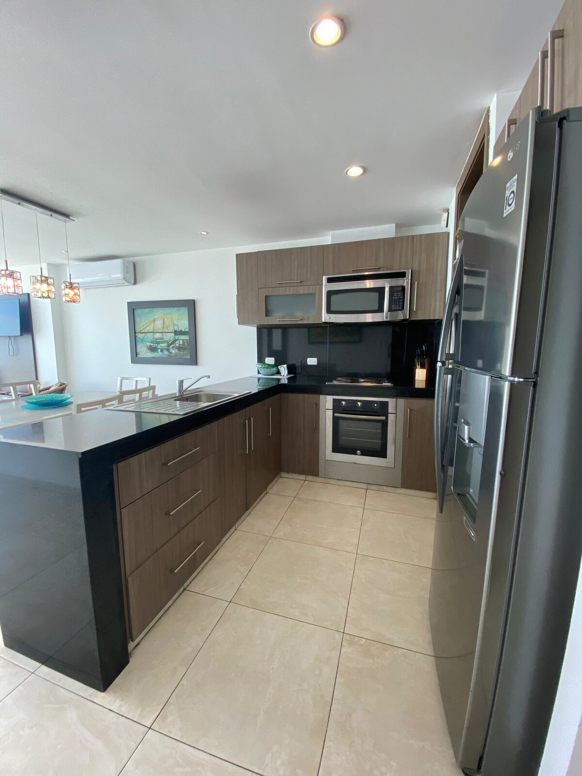 Frente al mar con seguridad 24h en la urbanización, playa y parqueo. Acorde con el sonido del mar, tome café con la brisa entrando por la ventana y sienta que el tiempo paró ♥ ⭐Incluye: • 3m caminando a playa • Parqueo y vistas 360° • WiFi 600Mb • Piscinas, jacuzzi y zona BBQ • Cuartos con A/C, agua caliente y cortinas • TV: Netflix, Spotify & Alexa • Airfryer, cafetera, micro, refri y cocina • 3 baños, cuna, Petfriendly, ascensor • Toallas, ropa de cama y papel • Guardias, y cámaras 24h