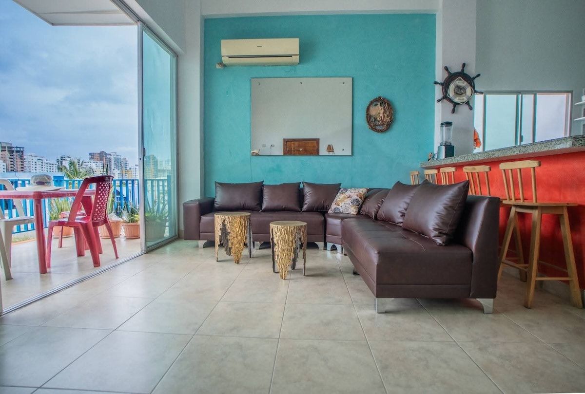 Alojamiento en conjunto residencial con vista y salida al mar en Ballenita. Cuenta con WIFI, cocina, servicio de cable, aire acondicionado, duchas con agua caliente, parrilla y terraza Excelente lugar para descansar y desconectar de la ciudad