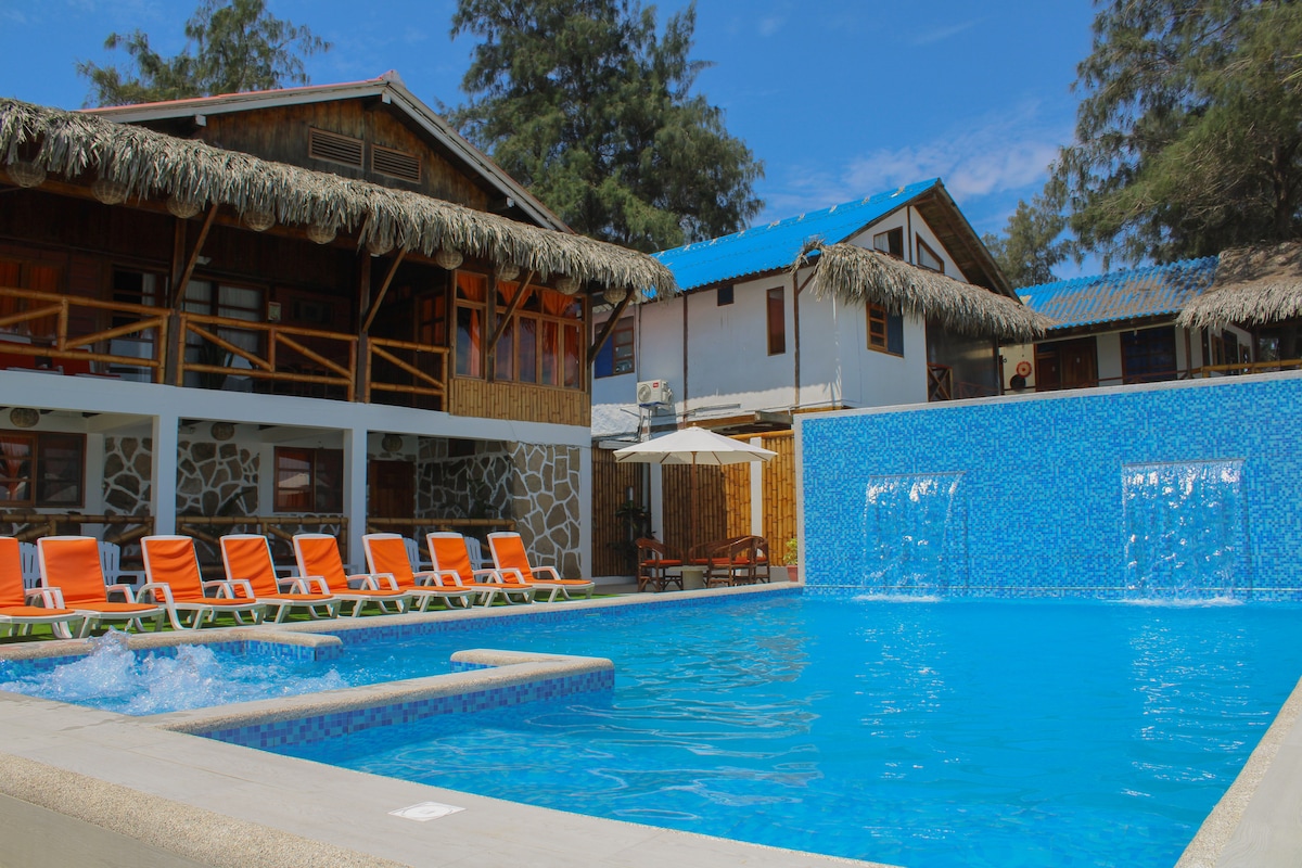 Hermoso lugar para descansar y disfrutar de un lindo paisaje y una hermosa playa. sal de la rutina y crea momentos mágicos e inolvidables, te brindamos el mejor hospedaje y servicio, habitaciones matrimoniales, habitaciones grupales, piscina , jacuzzi , parrilla, horno y lo mejor para disfrutar los domingo en familia compartimos con nuestros huéspedes una rica paella de mariscos. !!!SEAHORSE T ESPERA!!