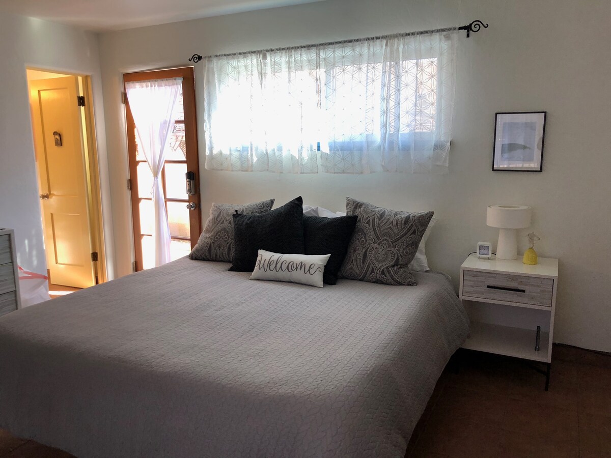¡Bienvenido a Santa Fe! Esta encantadora casa de campo tipo estudio y mi casa comparten la propiedad en este tranquilo barrio residencial. La casa está llena del encanto de Santa Fe con un interior acogedor y bonito, tragaluces y mucha luz natural, una cocina totalmente equipada, armarios hechos a mano, azulejos mexicanos, una cómoda cama tamaño queen y un patio con jardín privado. Es un refugio tranquilo pero céntrico, a solo 2 millas de la Plaza/centro de la ciudad. Es un lugar encantador para parejas, aventureros solitarios y viajeros de negocios.
