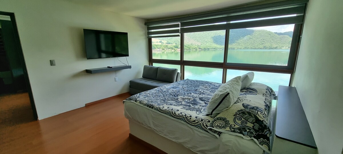 Hermosa casa a la orilla del lago con acceso a muelle grandes extensiones de jardín tanto al frente como atrás, en ubicación tranquila en la zona residencial de la laguna que te da la tranquilidad de estar en privacidad con tu familia y amigos en ambiente especial, cuenta con muelle para que estaciones tu lancha de forma segura. Ademas 2 amplios baños, 1.- Para damas con 2 wc's, 1 regadera y amplio vestidor 2.- Para caballeros 1 wc, 1 Regadera y amplio vestidor