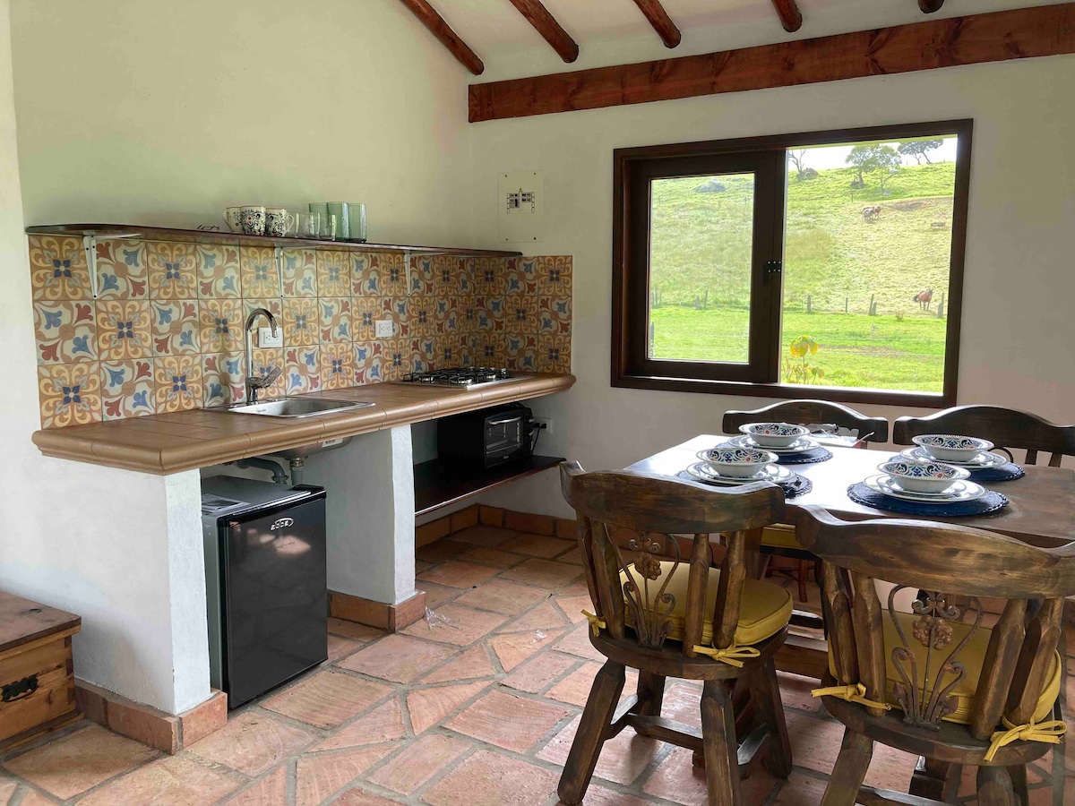 Cabaña ubicada en las montañas del Resguardo Indígena de Chía, Cund. Conexión con la naturaleza, vista al municipio y a las montañas, ideal para desconectarse de la ciudad y tener un momento de tranquilidad. Cerca de Bogotá, a 15min del centro de Chía y 10min de Andrés Carne de Res, llegada de fácil acceso. Cerca hay lugares para montar en bicicleta o caminar al cerro de la valvanera. Se puede llegar en transporte público, uber o taxi sin problema, toda la vía está pavimentada.
