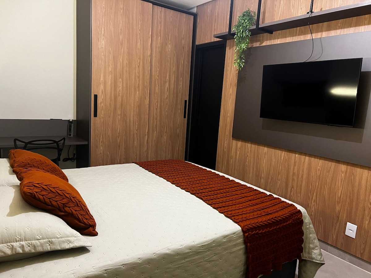 Próximo ao centro de Santarem, ideal para aproveitar sua viajem a lazer ou a trabalho.Flat com cama casal, guarda roupa, central de ar, Tv e acesso a internet, equipado com cozinha completa com geladeira, fogão, air fryer, panelas e loucas para suas refeições, lavanderia compartilhada e uma pequena academia. Localizado a 3 km da orla da cidade, próximo a comercio, faculdades, prefeitura, farmácias, panificadores e restaurantes. Alter do Chao fica a 37 km de distancia e ha 40 minutos de carro