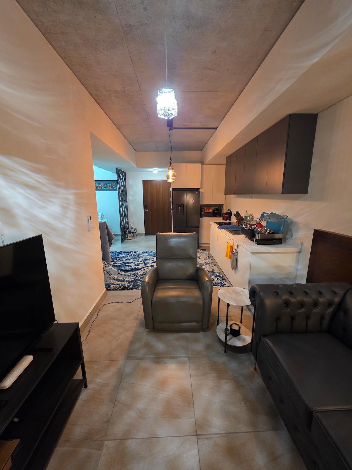 !La mejor ubicación y vistas 360 de Monterrey! Penthouse totalmente remodelado con acabados de lujo y sistema Alexa. 2 pantallas de 65’’ y 50" c/ Firestick (canales & eventos). Ubicado en zona de fácil acceso y con seguridad. Penthouse de 2 pisos: Parte baja: cocina, comedor, área social con sofa-cama; mesa de ónix; chimenea, congelador, baño completo, TV & Terraza (sillones) Parte alta: Recámara, cama queen, TV, frigobar y escritorio. Alberca, GYM y Sala de reuniones