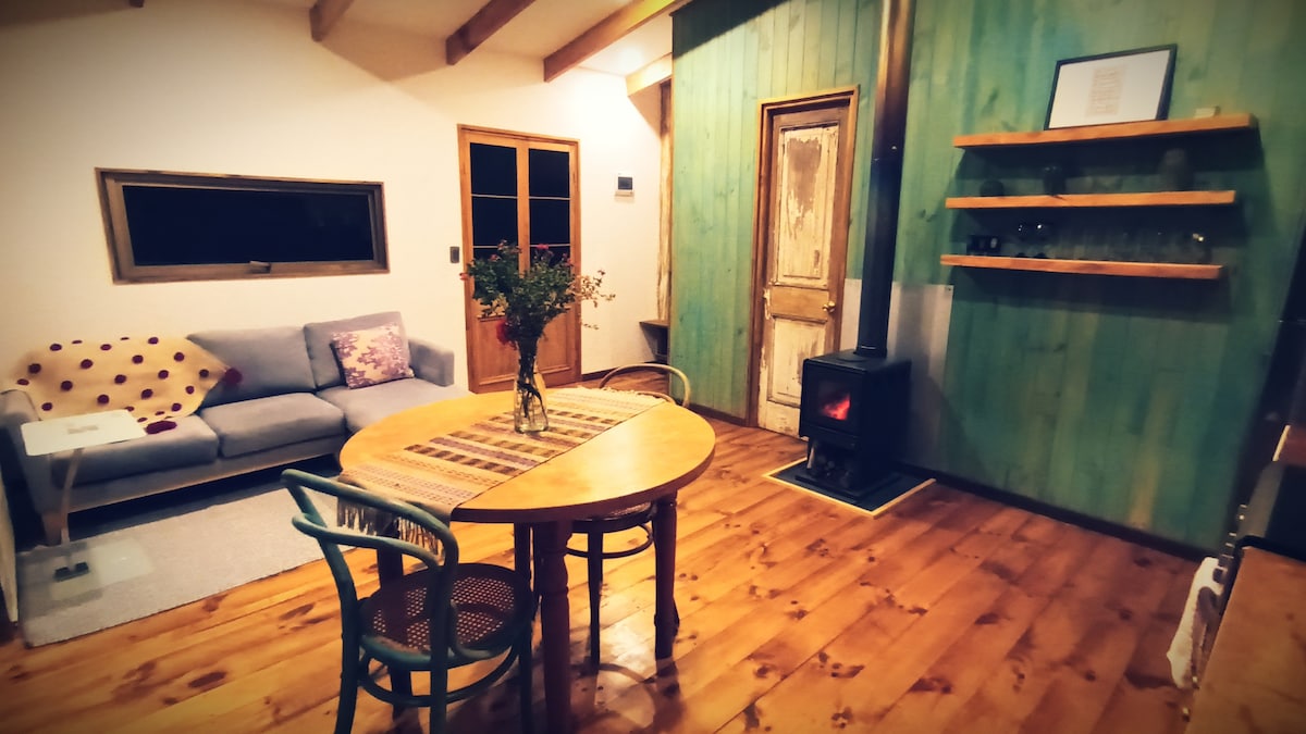 Acogedora cabaña en el Cajón del Maipo con tinaja caliente al aire libre. La cabaña está rodeada de áreas verdes y posee una hermosa vista a las montañas. Tiene posibilidad de paseo al estero y río. Cuenta con wifi y estacionamiento cerrado. Acceso en auto y en transporte público. A 15 minutos en auto de Las Vizcachas. Otra opción que ofrecemos: airbnb.com/h/cabrust2 Conecta con la naturaleza en esta escapada inolvidable!