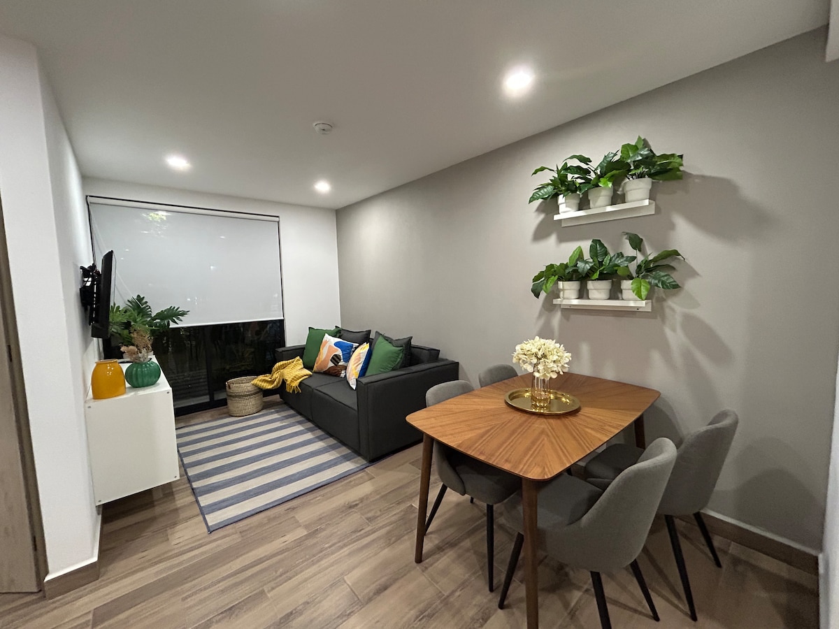 Suite céntrica, completa en 3er piso, cómoda y minimalista de 1 recamara con cama matrimonial, sala-comedor con 1 sofa-cama (que se puede configurar en matrimonial o 2 individuales), cocina con lo necesario para preparar alimentos y baño con agua caliente continua En ubicación privilegiada cerca de Bellas Artes, Paseo de la Reforma, Polanco, Chapultepec y mas lugares interés de la ciudad, Foro GNP, Arena CDMX, en un ambiente tranquilo, con todas las facilidades para una estancia inolvidable