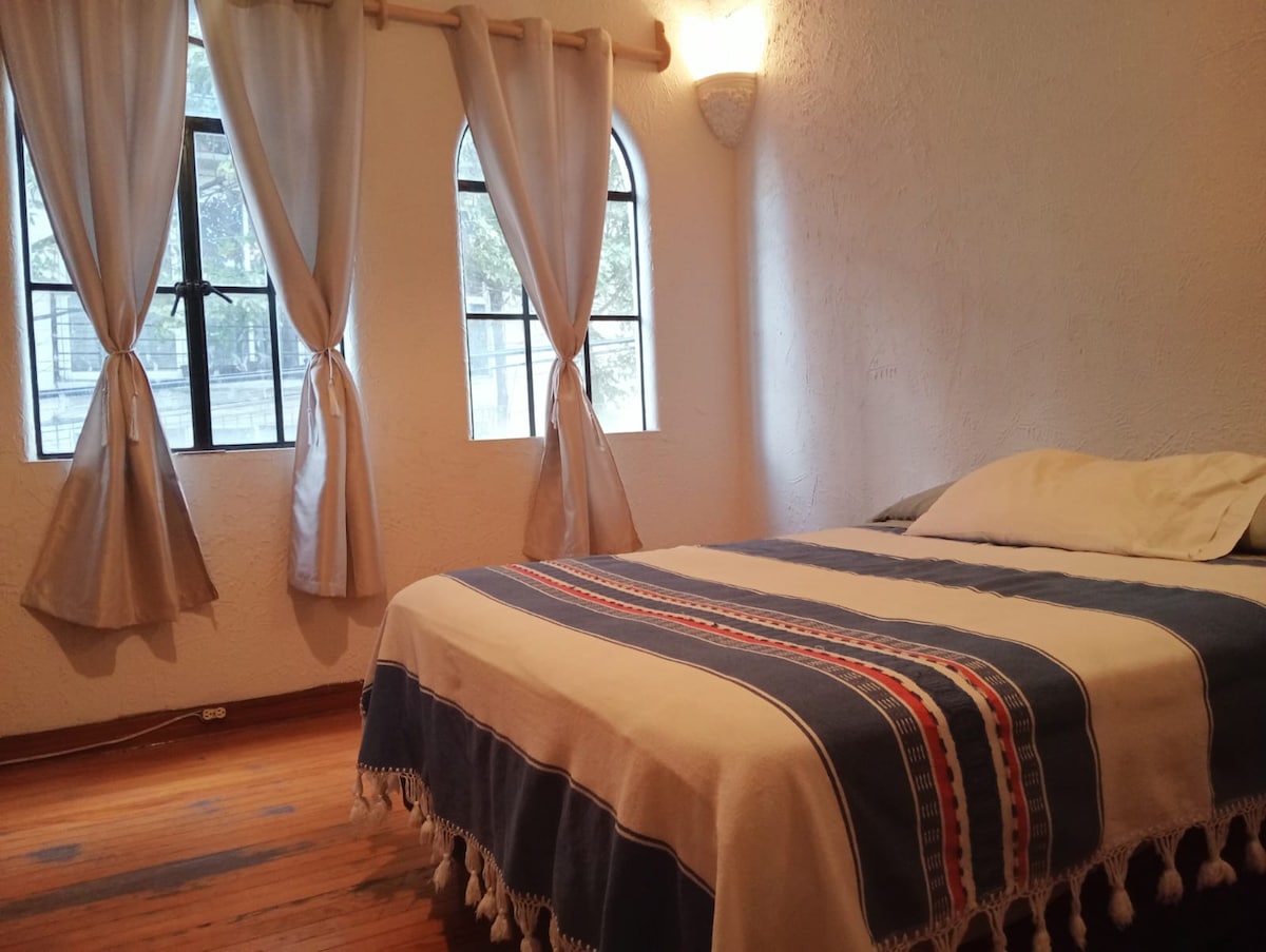 This is a 57 square meter apartment with very high brick ceilings, a large living room and dining area with a lot of light. Find authentic chic mid century furniture and several art pieces. The apartment has a private bedroom with queen size bed, closet and bathroom and a separate kitchen with supplies. It also has two small inner patios for light and ventilation. A lot of original architecture details from 1940 like floors, brick walls, ceiling and windows frames were conserved in the restoration. The project was recently featured in Architectural Digest Mexico and won several important architecture prizes: Architecture Masterprize and NoldiSchreck. Guest may use the whole apartment. You can also hang out in the inner patio of the condo and first floor lobby. There is also a laundry room with washer and dryer you can use next to the garage. Santa María La Ribera is a historic 19th-century neighborhood. Stroll in the Alameda Park opposite, then visit the nearby Museo de Geología. Here, gaze at mammoth and dinosaurs fossils, plus paintings by the famous Mexican master Jose María Velasco. You'll find a lot of public transportations options including subway, metrobus (direct line to the airport and historic center), train, bus and public bike system (ecobici). Metrobus Linea 4 norte is a direct connection from the airport T1 and T2 to Buenavista and back. Takes about 45 min. 30 Pesos/person, a rechargable Metrocard is need. Safe, quick and direct way to and from the airport.