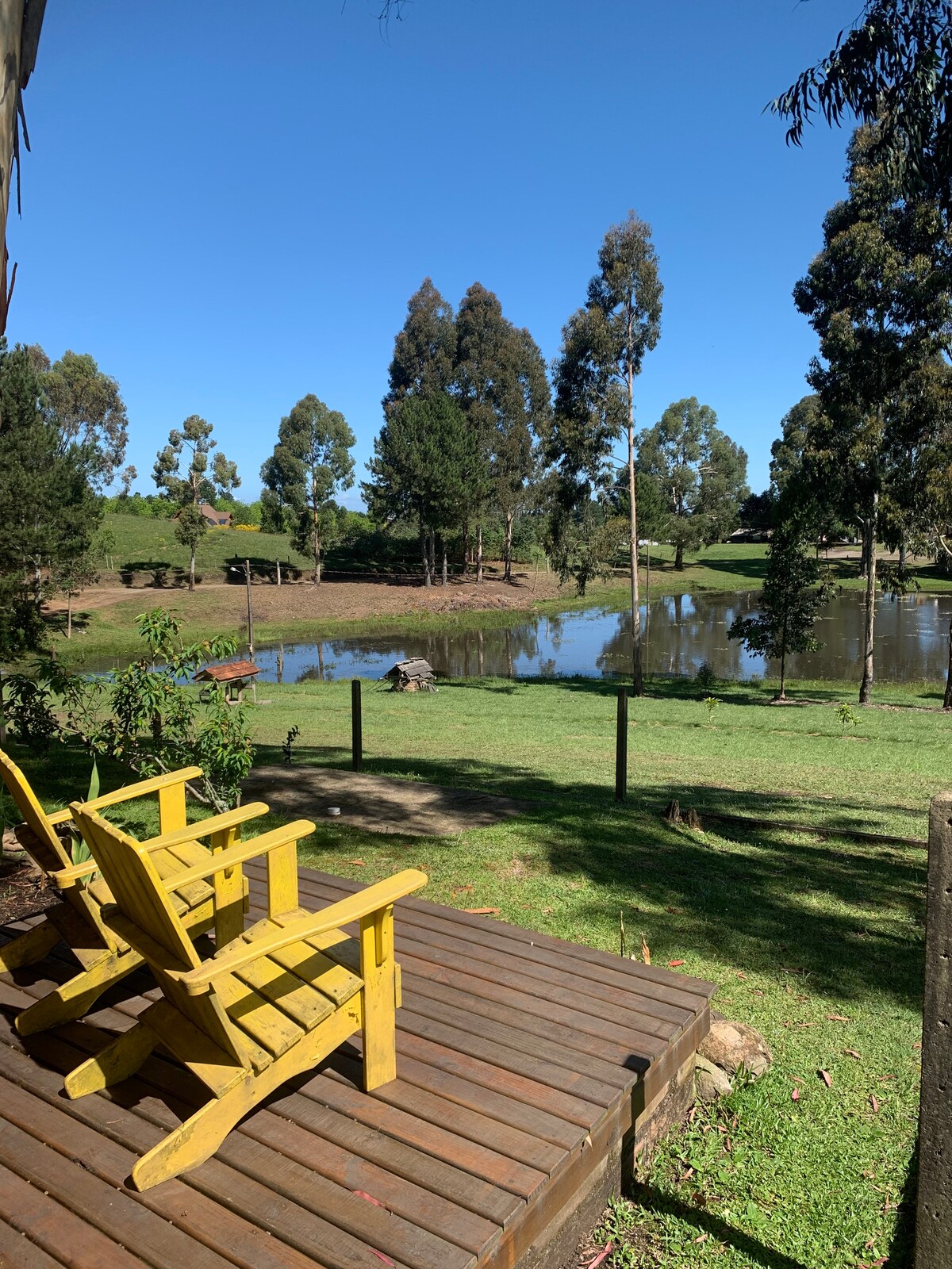 La casa está situada en medio de la naturaleza y se encuentra a 6 km del centro de Canela y a 15 km del centro de Gramado, con vistas al lago y con toda la tranquilidad que necesita para relajarse. El espacio es perfecto para una pareja o una pareja con 1 hijo. Tiene aire acondicionado (frío/calor). La tarifa diaria incluye desayuno y, además, hay un restaurante separado disponible para el almuerzo y la cena con reserva previa (no incluido en la tarifa diaria). El espacio dispone de estanques para la pesca deportiva, cuya práctica se cobra por separado.