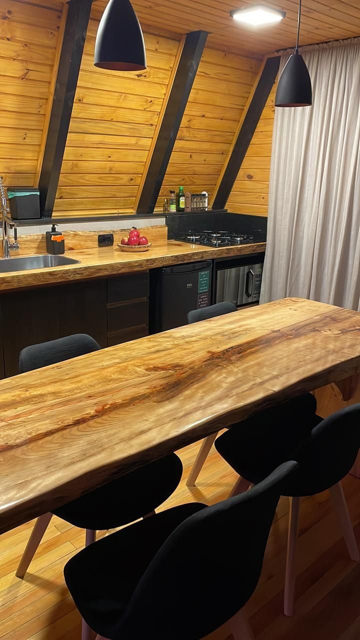Hermosa cabaña A-frame con una ubicación privilegiada, cerca de las principales bodegas de la región. Súper acogedora, con una vista increíble del valle y las araucarias. Ven a disfrutar de esta tranquilidad, con el sonido de los pájaros y con toda la tranquilidad que ofrece el lugar. La cabaña cuenta con bañera de hidromasaje y una zona exterior con una plaza de fuego y un mirador para que puedas estar en contacto con la naturaleza. ¡Ven a disfrutar de esta experiencia única en la ciudad de Neve! Winter Valley Cabins te espera.