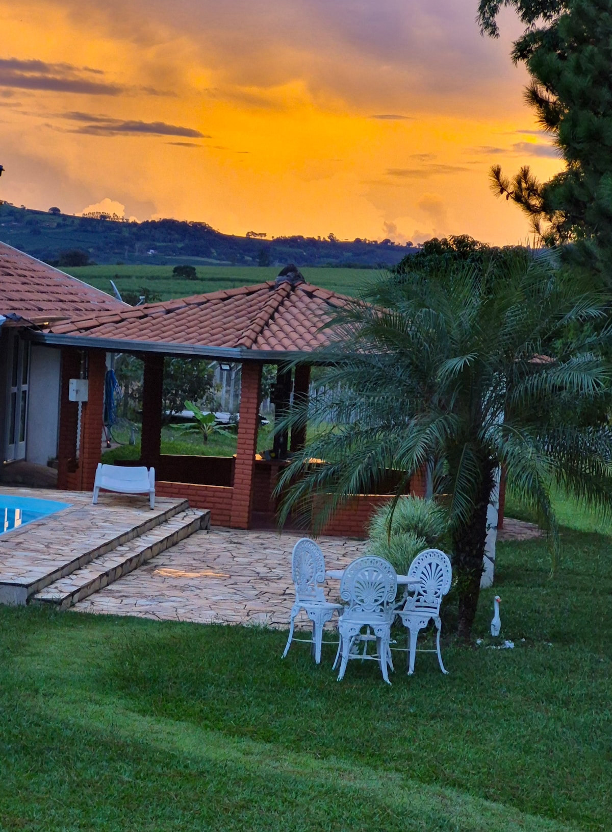 Casa de campo con piscina climatizada por energía solar. La cocina exterior cuenta con: elementos esenciales, nevera, congelador, microondas, filtro de agua, freidora de aire, cafetera 3 corazones, smartTV y 2 baños -Wi-Fi 🛜 - Suites con aire acondicionado -La habitación tiene lavabo, cómodo sofá y smartTV -Alquilamos la granja solo para hasta 10 personas -La chopeira no está incluida en el paquete -No proporcionamos almohadas ni ropa de cama/baño -Lavar los platos y sacar la basura después del checkout