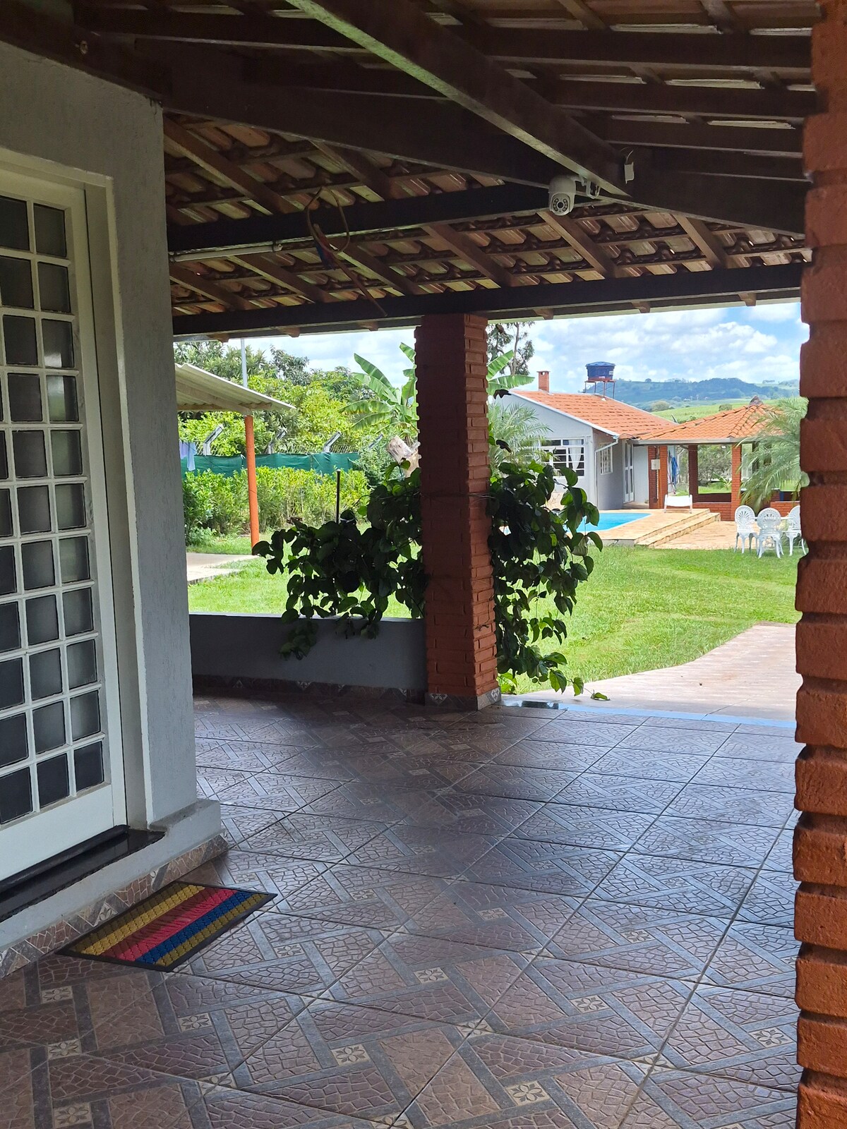 Relájese con toda la familia en este alojamiento tranquilo. Granja para descansar y disfrutar. No alquilamos para fiestas con DJ o cargo en la portería. La granja tiene 2 dormitorios; un baño interno; un baño externo; piscina; ducha; barbacoa; congelador y nevera dúplex; cocina de 4 hornillas y encimera. Una habitación tiene 1 cama doble con armario, y la otra 2 camas individuales y 5 colchones dobles. Situado en Estancia Araras, a 6 km de la ciudad de São Sebastião do Paraíso - MG.