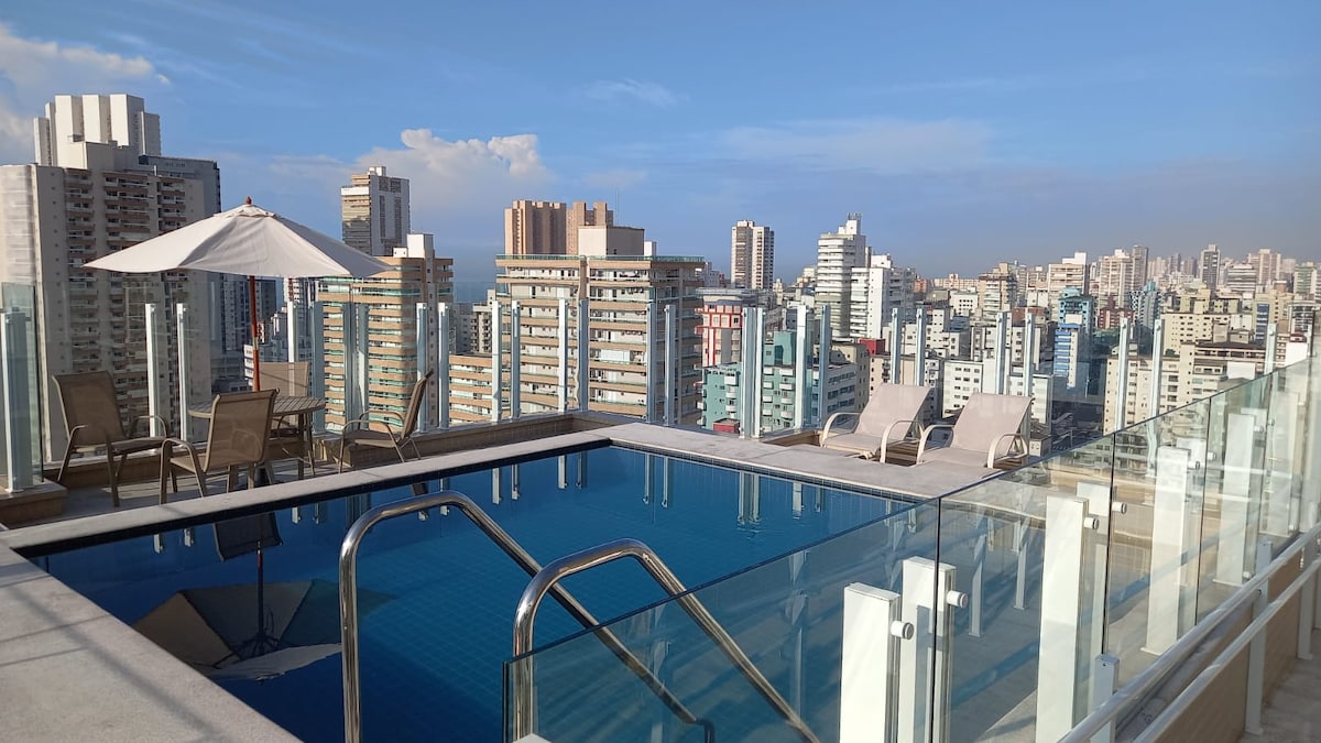 Apartamento nuevo y totalmente planificado “Flat studio” en Praia Grande, con dormitorio integrado, balcón gourmet y ambiente climatizado, moderno y confortable. Ideal para amigos, parejas y familias. Ubicación privilegiada, cerca de la playa, mercados, farmacias, panaderías, restaurantes y tiendas en general. Condominio con estacionamiento, seguridad y estructura moderna. Practicidad, comodidad y excelente relación calidad-precio para tu estadía en la costa. Piscina en la azotea con vista al Mar.