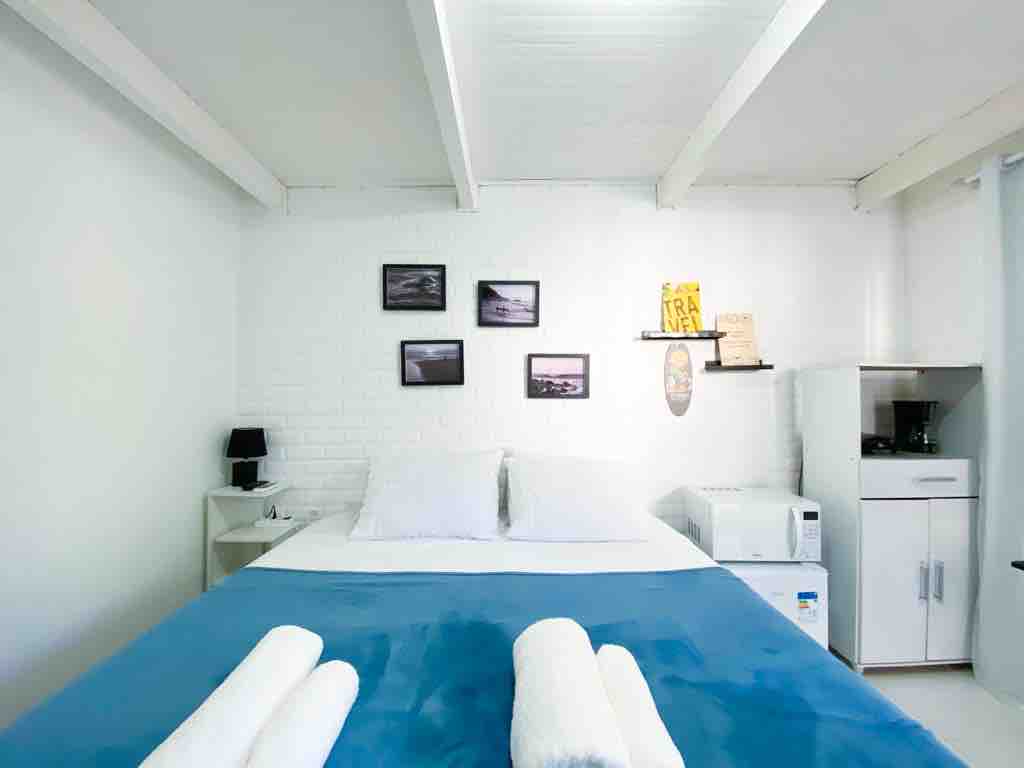 Hermosa suite privada de 20 m2, recién inaugurada y ubicada en el mejor pico de Itaúna, a 80 metros del point, el famoso escenario de la Etapa Mundial de Surf. Cuenta con un hermoso baño privado, aire acondicionado Split, wifi, minibar y smart TV para acceder a aplicaciones. Ambiente aireado, limpio, seguro y perfecto para sus días de descanso.