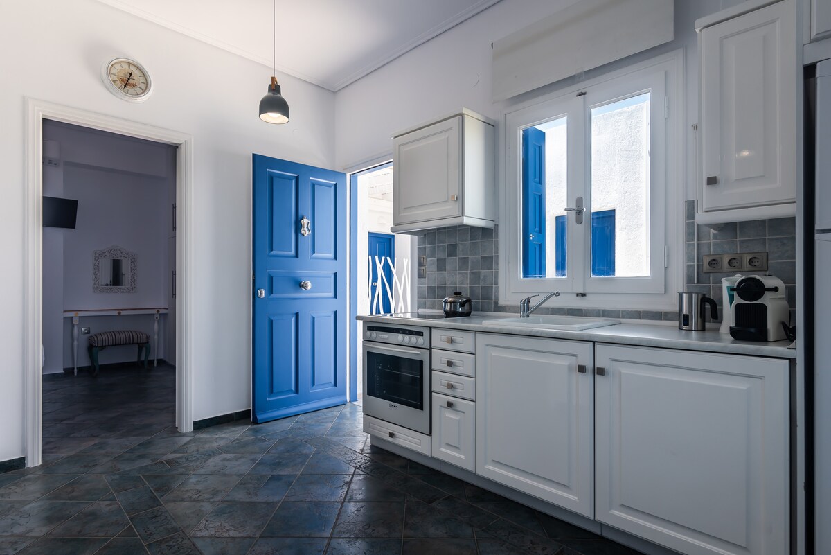 Nuestra casa cicládica tradicional tiene cien años y solía ser un refugio de verano para nuestra familia..Se encuentra en el paseo marítimo en el pintoresco pueblo de pescadores de Mandrakia en la costa norte de la isla.Nuestra casa está situada justo al borde del agua. y por lo tanto tiene una vista panorámica al mar.Desde nuestra terraza podrá disfrutar de impresionantes vistas del mar Egeo y tener acceso directo al agua.Salga por la puerta principal,baje una escalera al mar para bucear o nadar.
