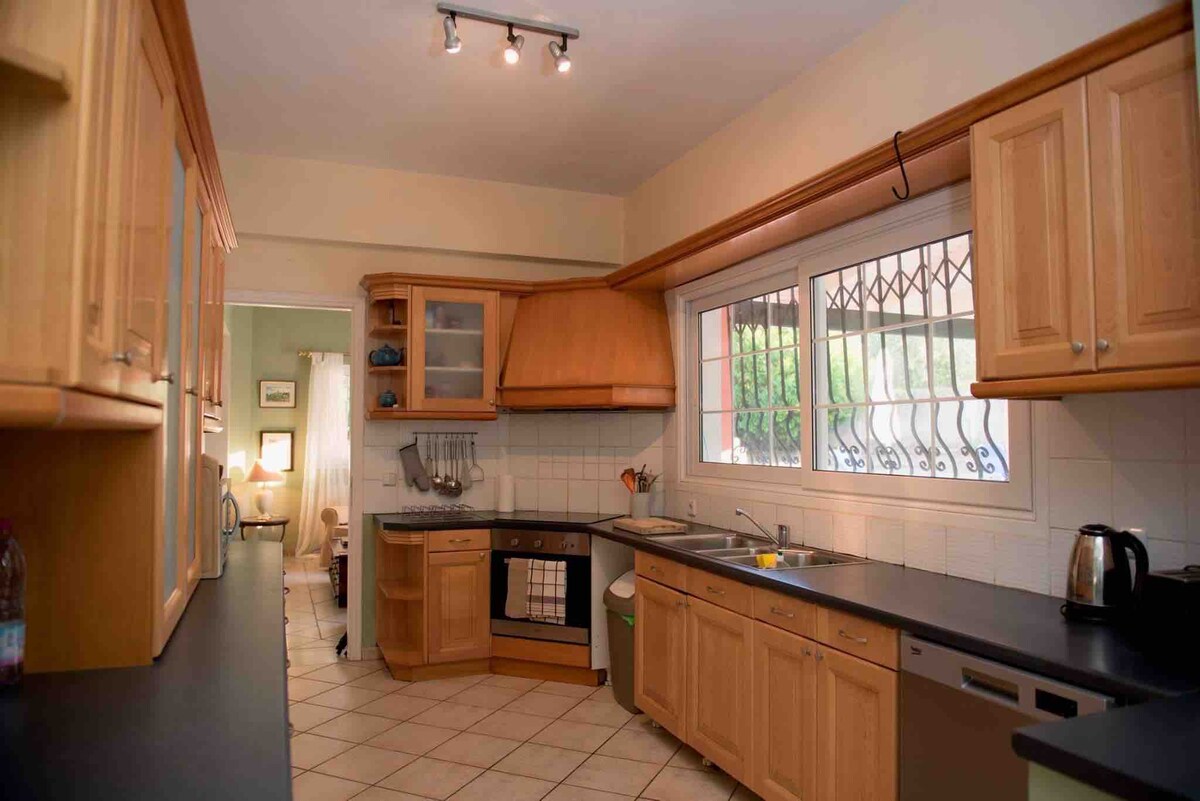 Descubre Villa Melissonia, situada en lo alto de una colina pintoresca en el sereno pueblo de Agios Stefanos Sinies. Este exquisito refugio te invita a disfrutar de una piscina privada, un exuberante jardín, un encantador patio con zona de comedor y barbacoa, y unas impresionantes vistas panorámicas del mar.