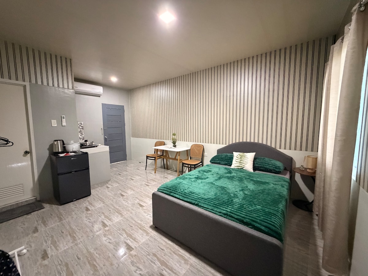 Habitación con aire acondicionado, TV con Netflix, con comedor. Cuenta con inodoro y baño propios. Estacionamiento seguro dentro del recinto. Lugar de interés: cerca de Road Haus Hotel (Manny Paquiao Hotel), Notre Dame de Dadiangas y SM GenSan Lee las reglas de la casa antes de reservar. Tarifas adicionales: 1. 100 PHP por día por el uso de la cocina de inducción. 2. Grupos con más de 3 invitados. Indica el número correcto de huéspedes al reservar. Proporcionaremos las camas de espuma extra.