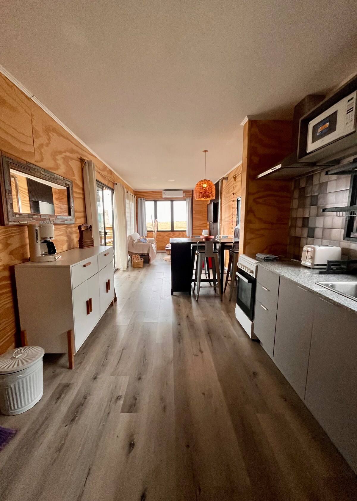 Bienvenidos a nuestra tiny house en Sauce de Portezuelo (Maldonado), rodeada de bosque, naturaleza a 5 cuadras de la playa. Podrán disfrutar del deck con parrillero, fogón y un gran living exterior bajo una pérgola. Adentro encontrarán: una cocina completa, estufa a leña, smart TV, aire acondicionado, baño completo y un dormitorio principal en planta alta con balcón. Cerca de Solanas y Punta del Este, esta tiny es el lugar ideal para descansar y desconectar.