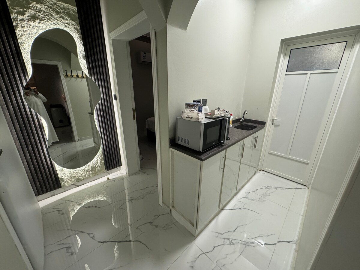 Un lujoso apartamento que consta de un dormitorio y un vestíbulo, con un jacuzzi privado. Equipado con una televisión inteligente, internet rápido y un baño con acabado de hotel La ubicación está en el barrio de Olaya Al Khobar, cerca de cafeterías, restaurantes y servicios y check-in automático para una experiencia fácil y cómoda experiencia.