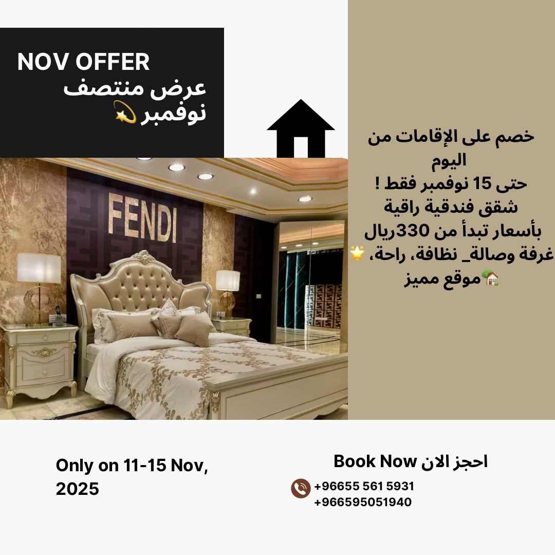 Enjoy comfort and tranquility with your family in a premium residence in one of Riyadh’s top neighborhoods. The home features hotel-style beds, a modern kitchen, and a cozy living room. The compound offers a gym and wellness center for men and women, game rooms, a smart market, and a café with indoor and outdoor seating. Ideally located near major events and services. Riyadh Airport: 17 mins Riyadh Boulevard: 5 mins