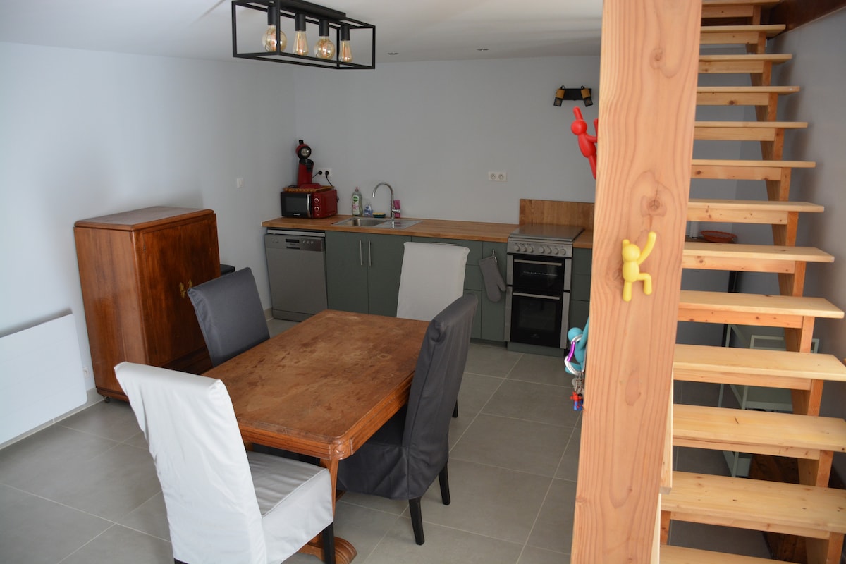 Situado en la planta baja, en la carretera departamental Thiers/Ambert, insisto en "departamental" ideal para una etapa de viajeros, Trabajadores, visitantes. Totalmente independiente, equipado con una sala de estar con comedor y sala de estar, una zona de cocina con todo lo necesario para 6 personas. El alojamiento incluye una habitación equipada con cama doble, una zona de dormitorio con literas y 1 pequeña habitación con camas de 2 personas con colchón real. Un baño. Posible acceso al jardín común.