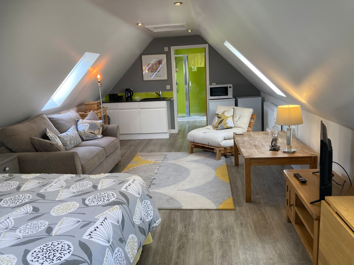 Situado en lo profundo de la campiña de Suffolk, The Carter's Loft es un estudio bellamente presentado y lleno de encanto. El popular pub local (White Horse) ofrece buena comida y cerveza local. Hay numerosos senderos en la puerta, una cafetería comunitaria que vende pasteles caseros y refrescos (abierta de 10:30 a 12:30 de miércoles a jueves, domingos ocasionales y algunos eventos nocturnos estupendos), además de nuestro viñedo local. Estamos cerca de la histórica Framlingham y a poca distancia de la costa patrimonial.