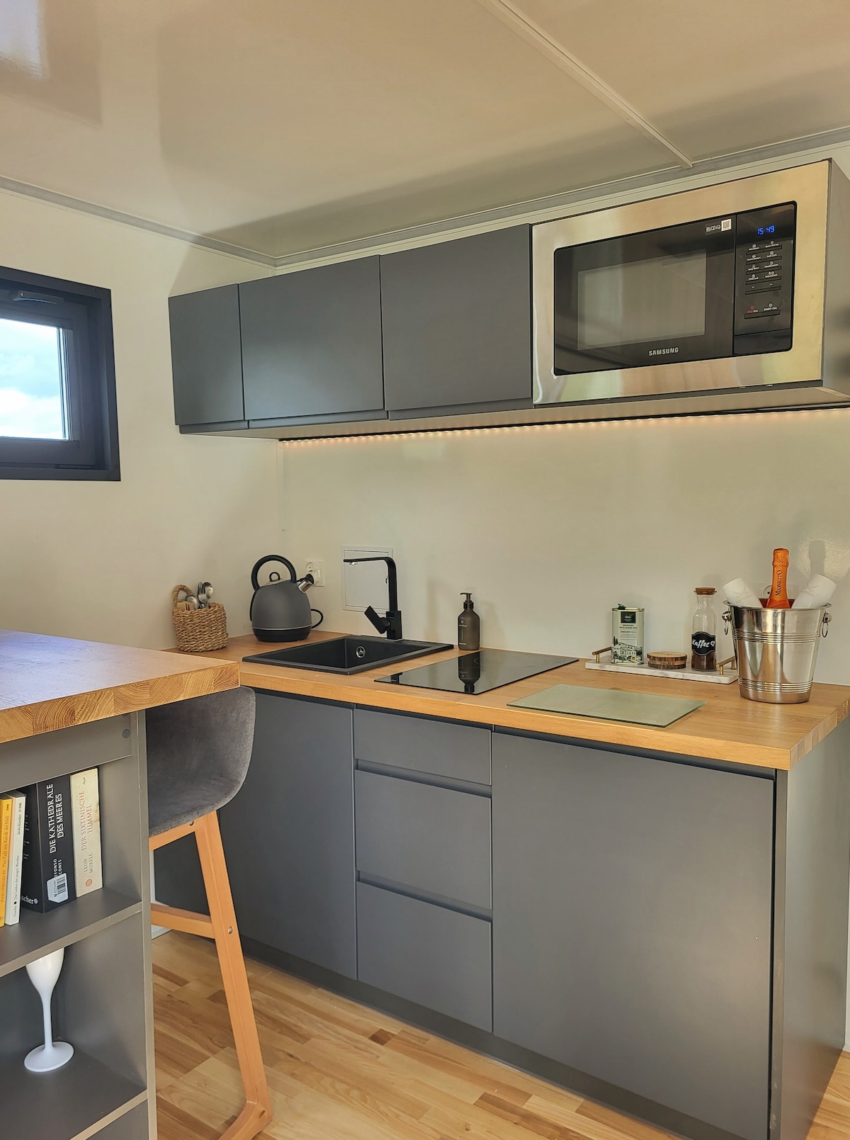 ¡Disfruta de días inolvidables en el lago artificial más grande de Alemania! Relájate en la soleada terraza de nuestra elegante casa flotante, disfruta de delicias caseras de la cocina totalmente equipada y sueña con dos cómodas camas de somier. Dos SUP te esperan para explorar el Geiseltalsee. El barco fijo es el punto de partida ideal para la aventura y la recreación, en el agua, pero cómodo como una casa pequeña.