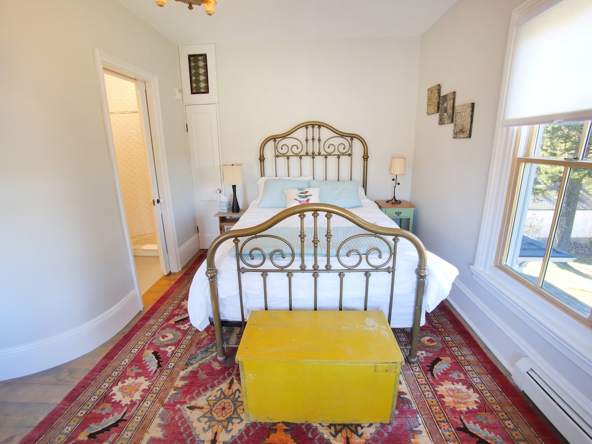 Fully furnished, private bedroom with queen bed and private bathroom in the lovely 1830 Beekman House located in the Historic District of Middleburgh, New York. Reservation also includes exclusive and private access to one of the downstairs parlors where you will find breakfast each morning prepared personally for you. (Assigned parlor pictured in photos). Amenities include parking, WIFI service, Smart TV with access to Netflix, and accesses to the 3 acres grounds.