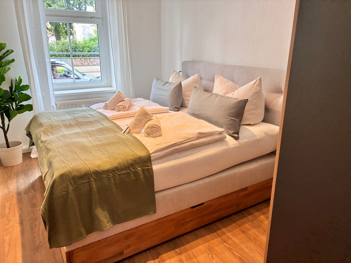 ¡🌿 El encanto industrial se une a la comodidad moderna! Te damos la bienvenida a nuestro elegante apartamento tipo estudio en una antigua fábrica de zapatos completamente renovada en Magdeburg-Buckau. 🏡 Hilights ✔ Calefacción por suelo radiante y ducha de efecto lluvia ✔ Cocina totalmente equipada (lavavajillas, horno, microondas) Wifi de ✔ 120 Mbit/s, televisor inteligente, lavadora-secadora LG A ✔ 500 m del Elba, a 3 minutos del tranvía. LA ✔ mejor ubicación cerca DE Mückenwirt, Datsche & Clubs ¡🔑 Llegada sin contacto y estacionamiento gratuito!